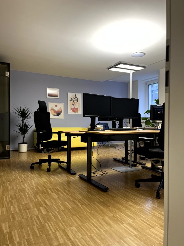 - FlexDesk: Du suchst dir einen freien Schreibtisch aus wenn du kommst. Wer zuerst da ist, mahlt zuerst. Aber keine Sorge – es sind aktuell immer genügend Schreibtische frei.